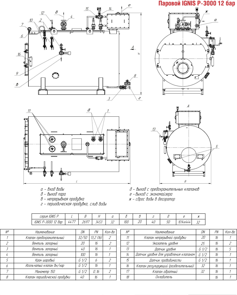 Технические характеристики парового трёхходового котла ARCUS IGNIS P-3000
